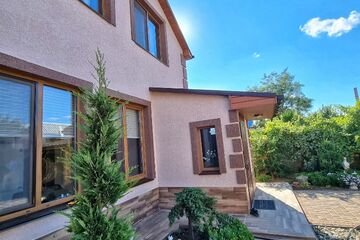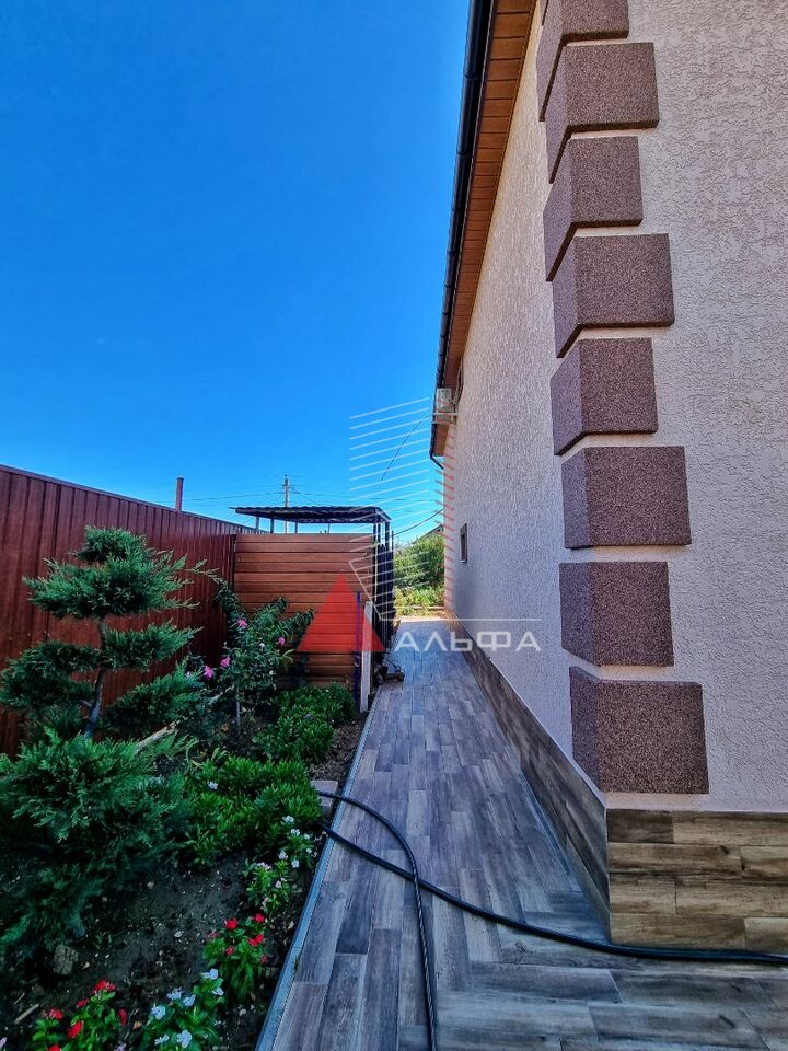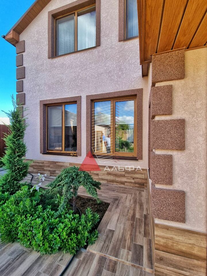 Продаётся дом общей площадью 137,4 м² на земельном участке 7 соток в с.Заозёрное Сакского района, что в 20 км от города-курорта Евпатории. До моря 700 м. Остаётся абсолютно вся мебель и техника. Двор полностью облагорожен. На территории есть сад, вольер для собаки или для хранения чего-либо, гараж, баня, беседка и летняя зона барбекю (возможно застеклить и сделать зимний вариант). На участке высажен большой фруктовый сад: персики разных сортов, кизил, киви, гранат, малина, клубника, яблони. В зоне барбекю проведена вода, холодильник, американское барбекю и мангальная зона. Просторный гараж 29,7 м² со множеством полок и инструментов. Настоящая русская баня на дровах, которая будет радовать вас, ваших друзей и близких в любое время. Коммуникации все в доме: канализация - септик; вода центральная и есть скважина; дополнительно установлен нагреватель для воды на 120 л; установлена очистительная система для воды ( 8 л/час ); отопление электрическое; установлен электрокотел (с возможностью замены на газовый); газ - на соседней улице (есть проект). Тёплые (водяные) полы по всему первому этажу. Дом построен из природного камня-ракушечника, утеплён минватой снаружи и внутри, а также между этажами. Потолок обшит деревом. Первый этаж: прихожая, где можно свободно разместить обувь и верхнюю одежду; кухня 22,3 м². (мебель выполнена на заказ, качественные и новые стиральная машина, холодильник, духовой шкаф); санузел совмещённый; установлена большая цельная ванна на 120 л; гостиная: отличное место отдыха для большой семьи 23,3 м² (большой современный телевизор, кондиционер, кресло-качалка и мебель - всё остается покупателю); гардеробная (4,5 м²). На второй этаж ведет лестница из дуба (выполнена на заказ). Под лестницей есть небольшая кладовая. Второй этаж: 3 комнаты с кондиционерами; санузел, гардеробная. Все документы готовы к продаже.