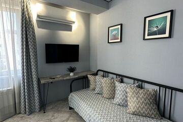 В квартире сделан дизайнерский ремонт, Квартира представляет собой гостинную с зоной кухни и отдельную спальню.