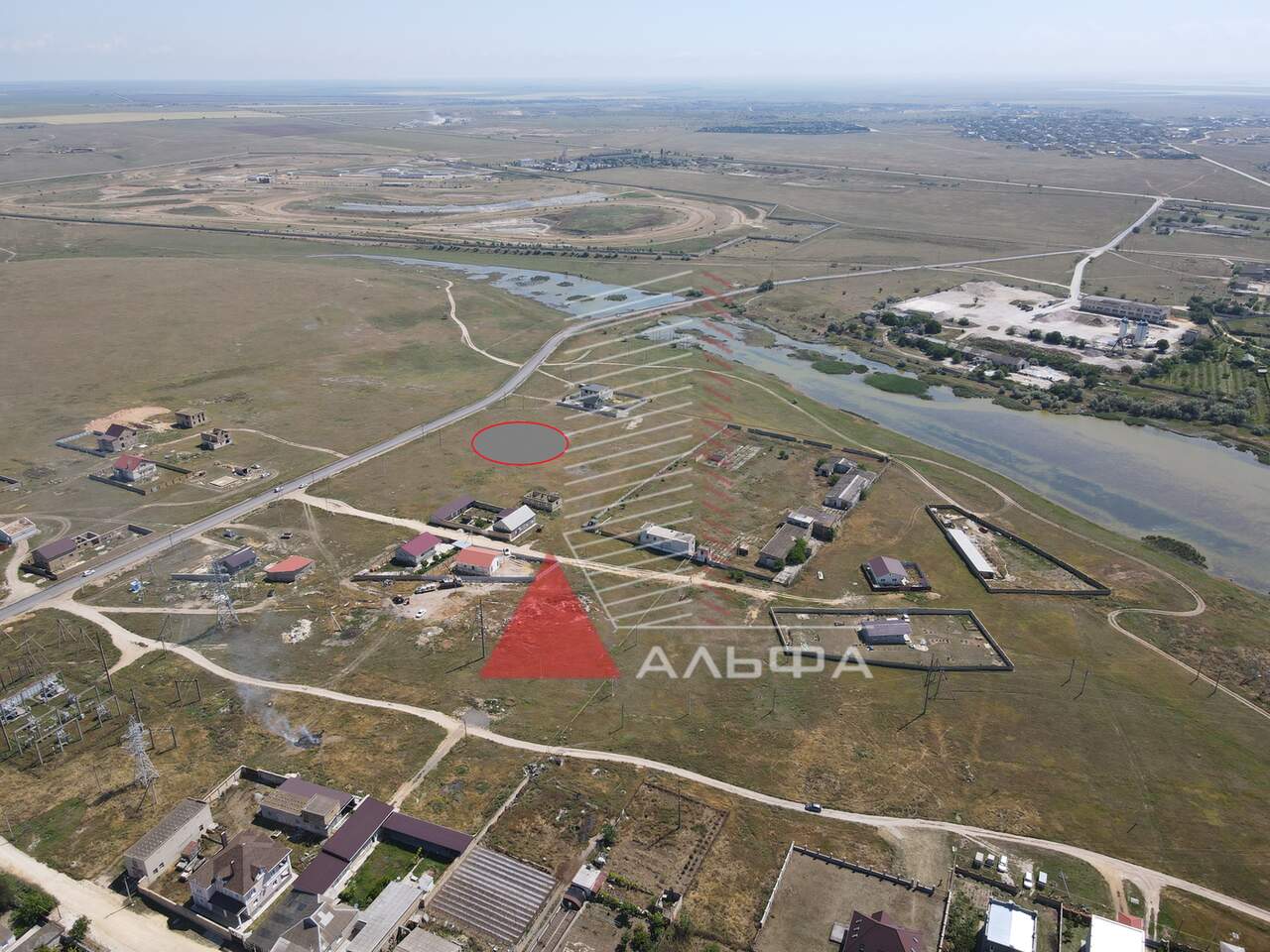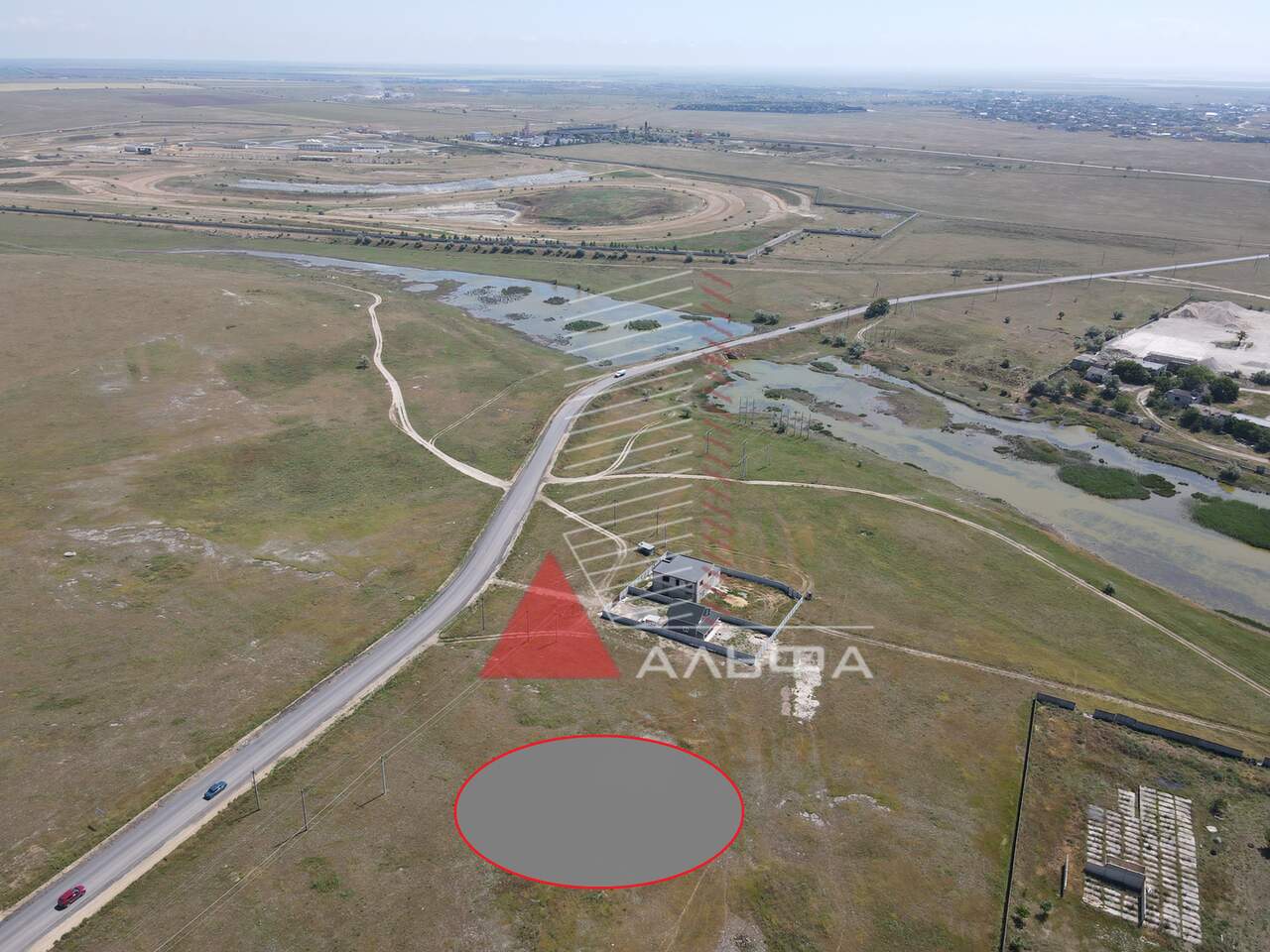 Площадь участка 10 соток, находится на асфальтированной улице. С участка отличный вид на озеро (озеро в 300 метрах от участка).